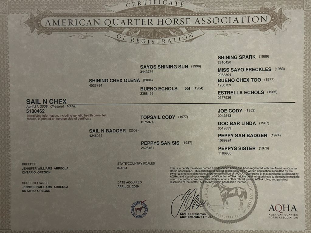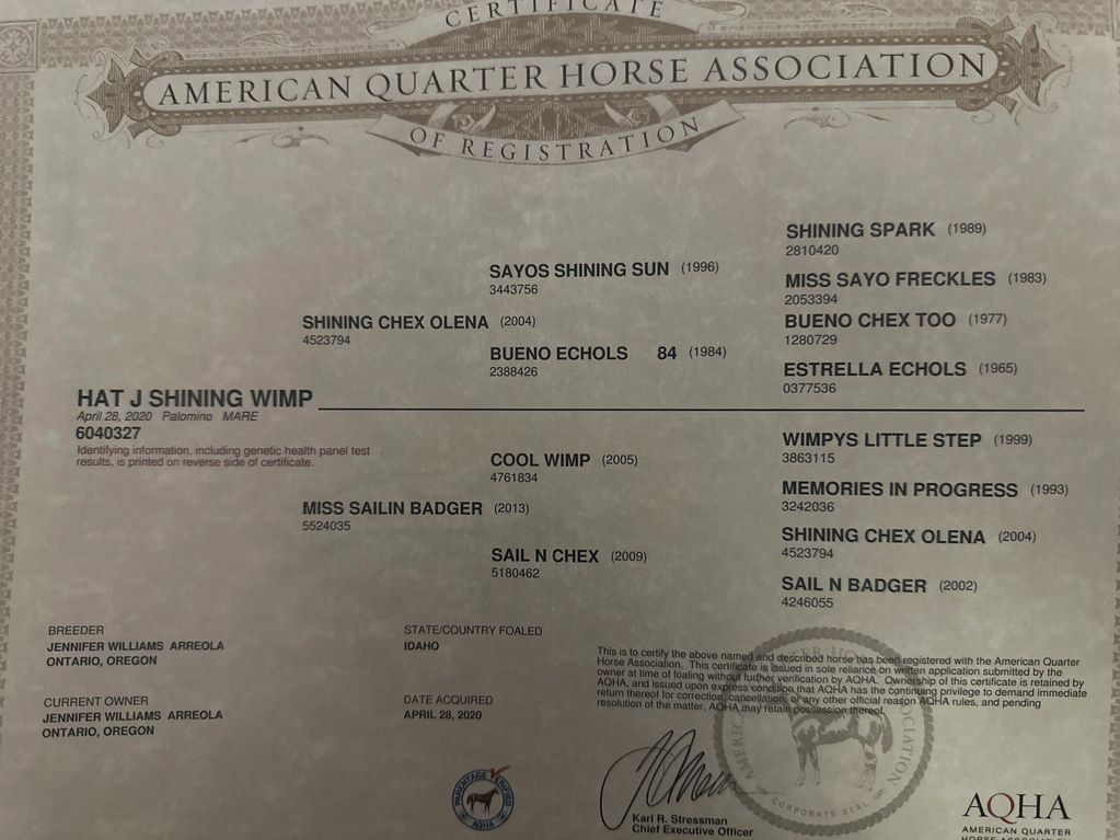 Shining Reinmaker is bred to HF Mobster.